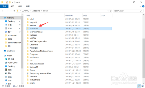 然后点击“Microsoft”文件夹,如图箭头指标的目的所示;