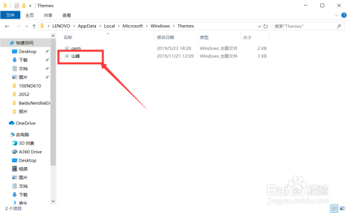 进入“Themes"文件夹后,我们就会发现我方才保留的以”山岳“定名的本家儿题在文件夹内了,这样我们就可以进行复制。