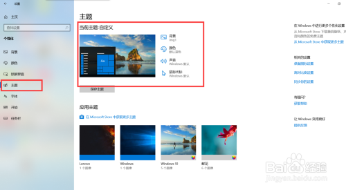 首先在桌面右击鼠标,选择“个性化”选项,然后点击左侧“本家儿题”选项,如图所示;