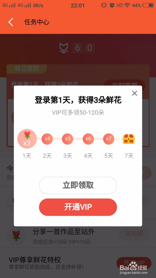 第二步,登录全平易近K歌,天天登录可以获得3朵鲜花,若是是绿钻则可以余外获得8朵鲜花,如图所示: