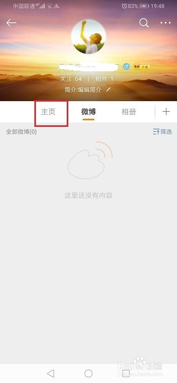 第二步进去小我微博界面之后,点击本家儿页,如下图所示: