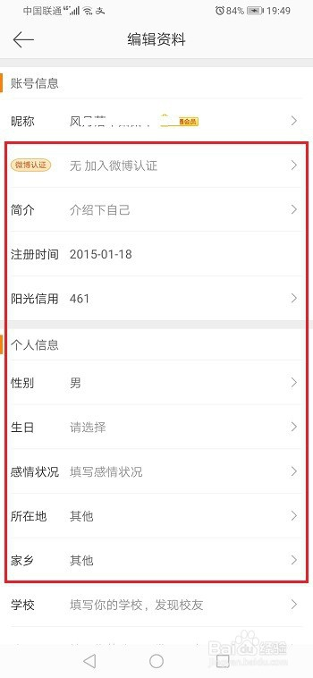 第四步点击微博本家儿页的编纂图标,进去之后,可以看到具体信息,如下图所示: