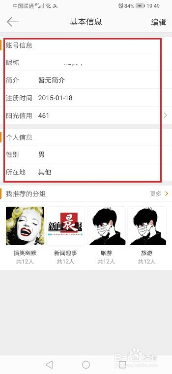 第五步我们也可以编纂小我信息,当然微博账号注册时候是不成以编纂的,如下图所示: