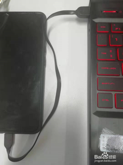 用数据线插在电脑的USB接口上,另一端毗连手机,将手机和电脑毗连起来,如图所示。