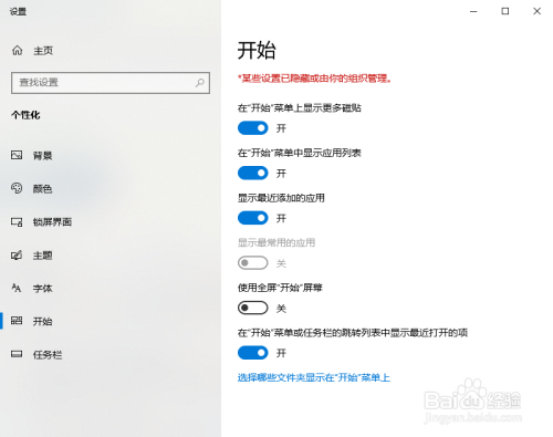 ·若是您不想单击“起头”菜单中的所有应用程序以查看您的应用程序列表,请将“在“起头”菜单中显示应用程序列表”滑到“打开”位置。