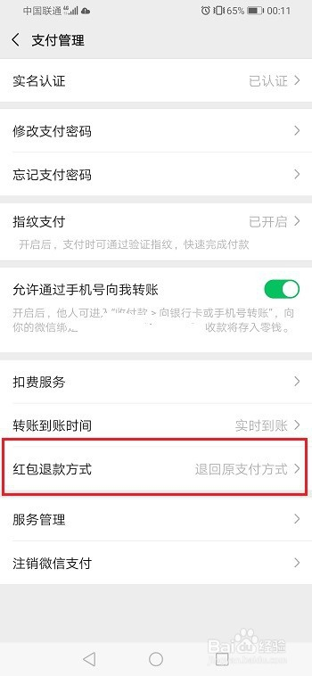第三步进去支付办理界面,选择红包退条目体例,如下图所示: