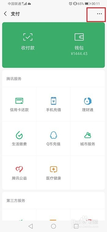 第二步进去微信支付之后,点击三点图标,如下图所示: