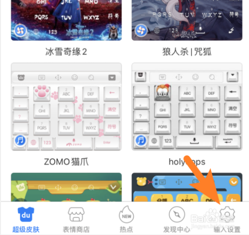 打开百度输入法,点击下方输入设置进入。