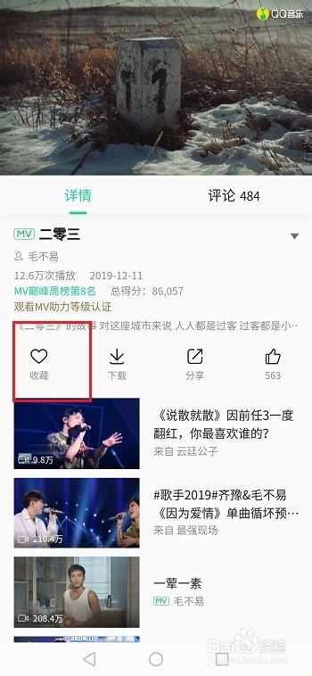 第五步若是不想保藏mv视频了,可以再次点击保藏进行打消保藏,如下图所示: