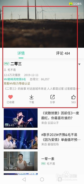 第三步进去qq音乐我喜好视频界面,可以看到保藏的mv,如下图所示: