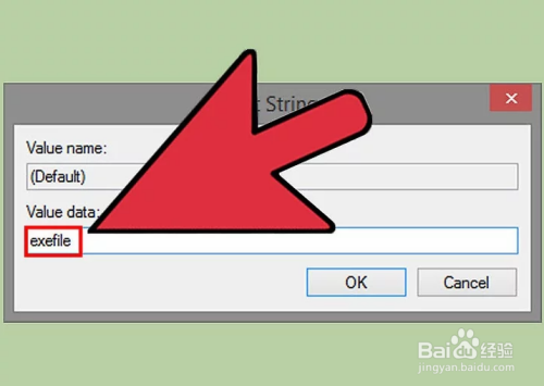 在“数值数据”一栏中输入exefile,点击OK保留更改。