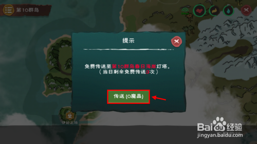 走到如下图所示位置点击采集手势,在菜单中点击“灯塔传送”,每日可免费传送3次,次日零点刷新次数,跨越3次每次传送花费25魔晶。