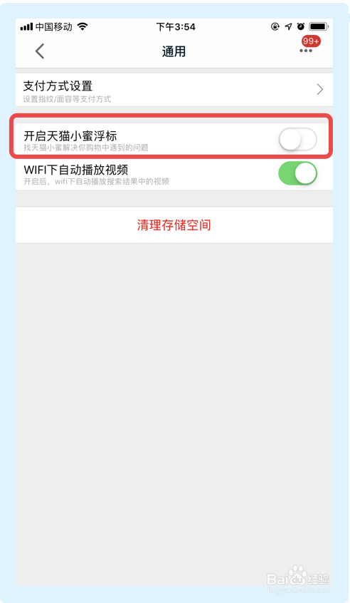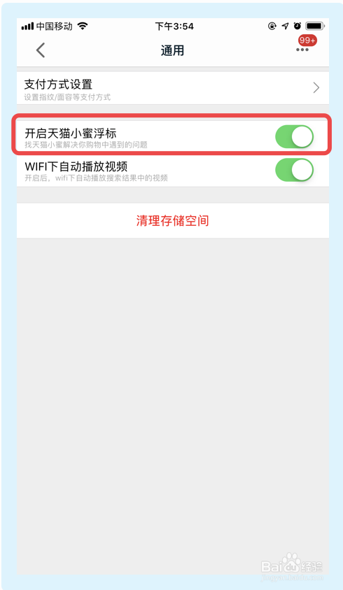 5.在【通用】界面,点击【开启天猫小蜜浮标】选项,完当作以上步调手机天猫app即可封闭天猫小蜜浮标功能。