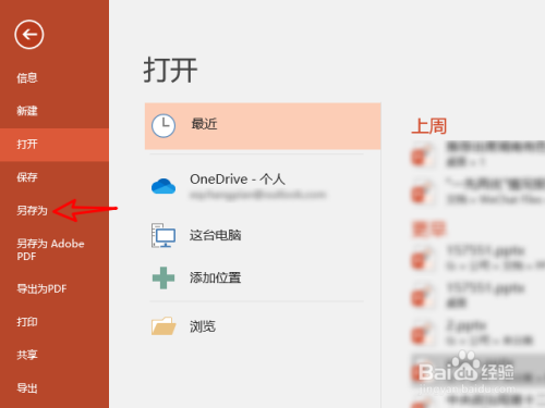 在PowerPoint菜单页选择另存为。