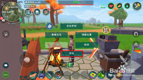 建造烹调锅需要用到工作台,烹调锅建造完毕摆放到方针位置。