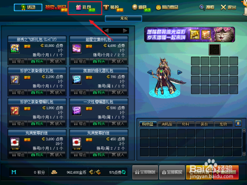 点击商城界面中的礼包选项。