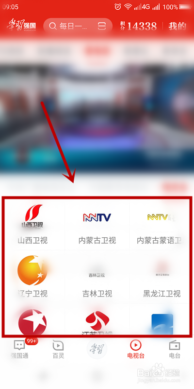 进入《学习强国》本家儿页后,点击最下一行【电视台】选项