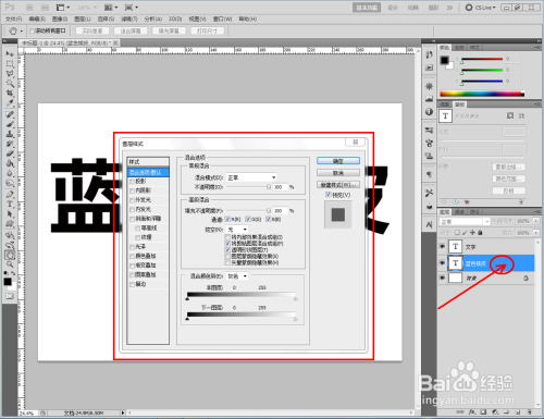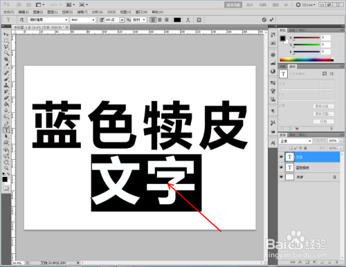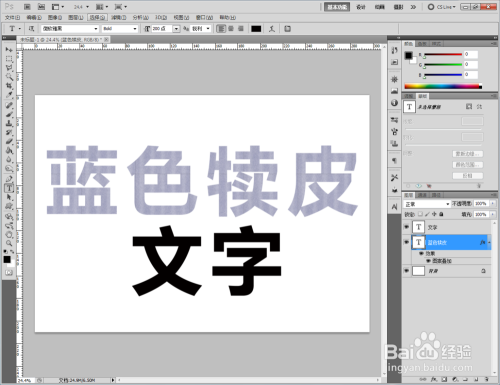 点击【文字东西】按图示设置好文字各参数后,完当作“蓝色犊皮”和“文字”文字建造;