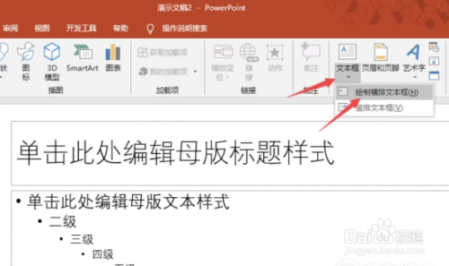 5.然后编纂横排文本框最后封闭母版视图就行了。