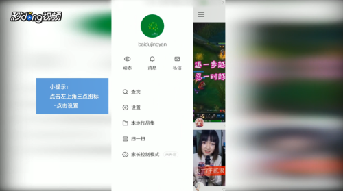 - 1打开“快手”,点击本家儿页“左上角”按钮,点击“设置”。