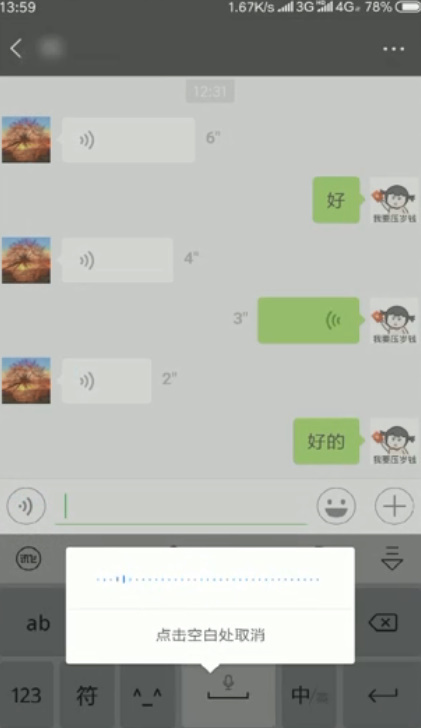 - 7回到聊天界面,一向按着“空格”键措辞即可。