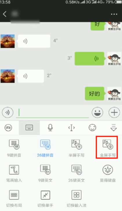 - 1方式一:合用手写输入,打开手机微信,点击聊天“对话框”,再点击输入法中的“切换输入体例”按钮。