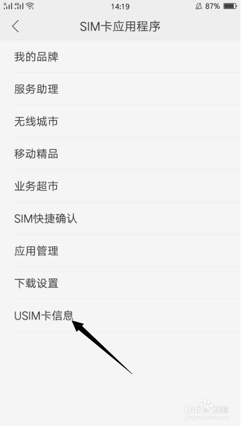 进入SIM卡应用程序界面后,点击“usim信息”。