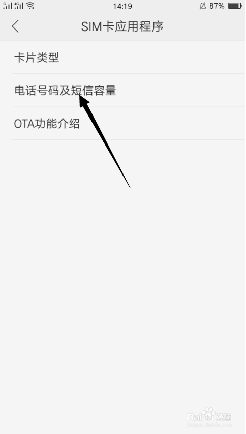 点击后,在弹出的界面点击“德律风号码及短信容量”。