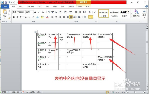 第六步:此时单位格中的内容没有垂直居中显示,下面就调整让表格中的内容都垂直居中显示。