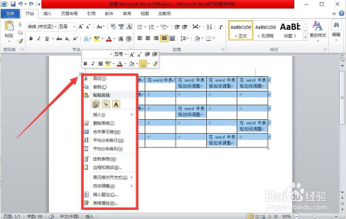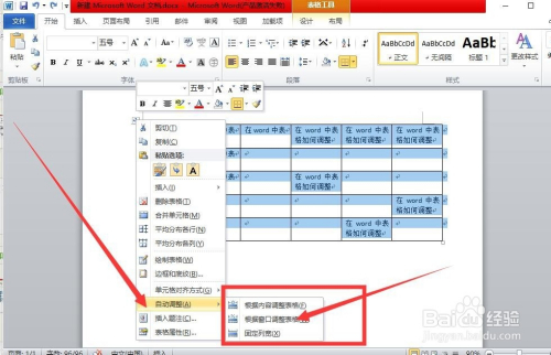 3、若是要调整的表格中内容和单位格,经由过程右键菜单中的“主动调整”和”表格属性“完当作