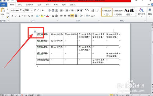 第一步:首先在office2010中我们进行演示,可以看到页面中有个表格。