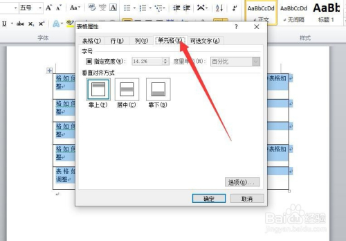 第九步:点击“单位格”选项后,鄙人面就会呈现垂直对对齐的三种显示体例“靠上”、“居中”、“靠下”。此时我们选中“居中”选项。