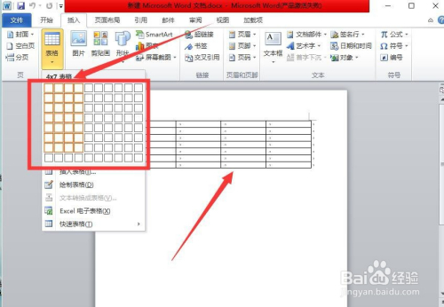 第三步:点击“插入”菜单后再点击下面的“表格”选项。就会看到有多种插入表格的方式。