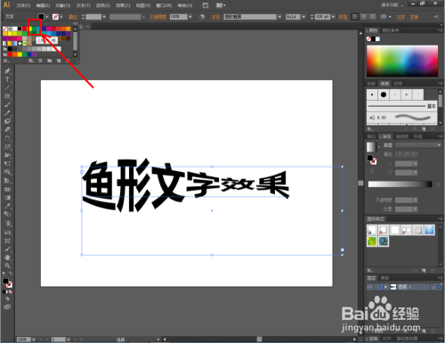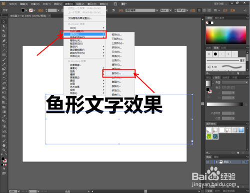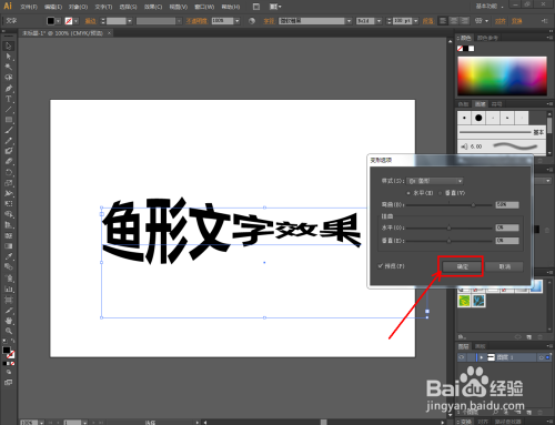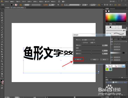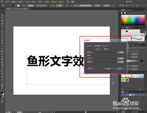 按图示对文字进行鱼形结果设置,这样我们的鱼形文字就建造完当作了。