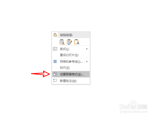1、打开PowerPoint,在幻灯片中右键打开设置布景格局。