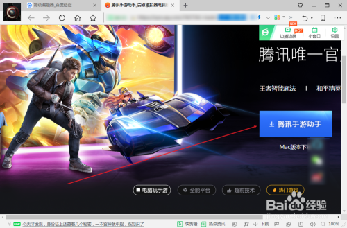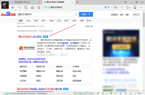 1、打开浏览器,百度搜刮:腾讯手游助手