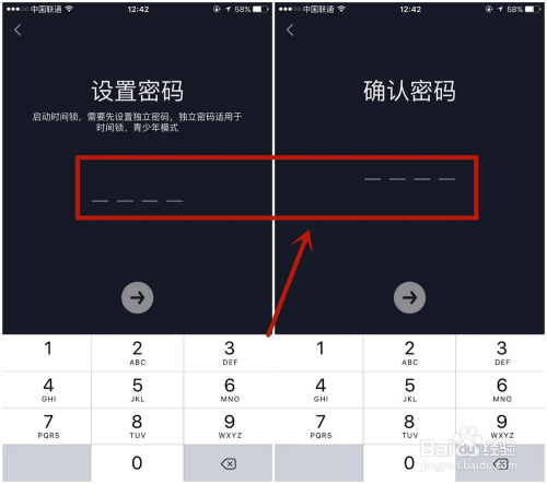 在设置密码页面,持续输入两次一致的四位数密码,即可当作功操作。