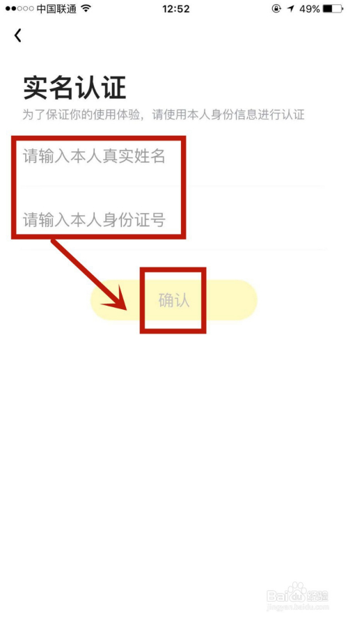 在实名认证页面,输入相关信息后点击确认,即可当作功操作。
