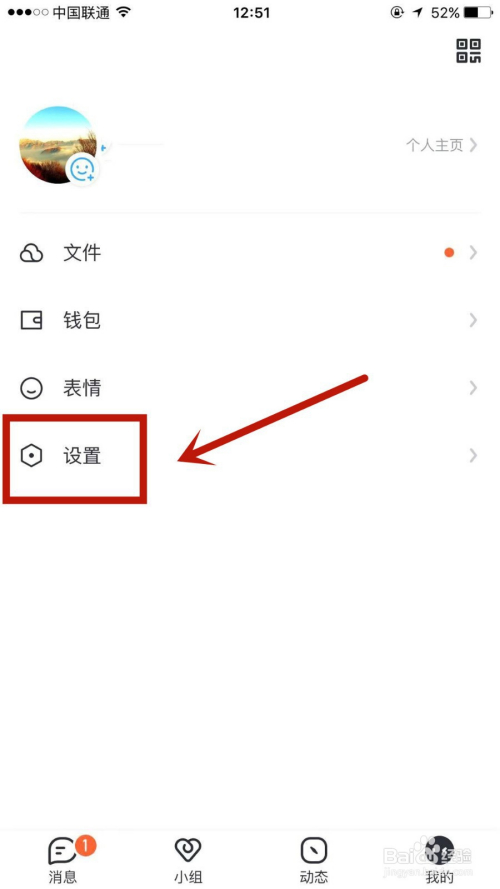 在我的页面,点击进入设置选项。