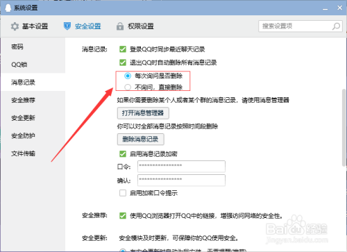 5、之后点击勾选“退出QQ时主动删除所有动静记实”