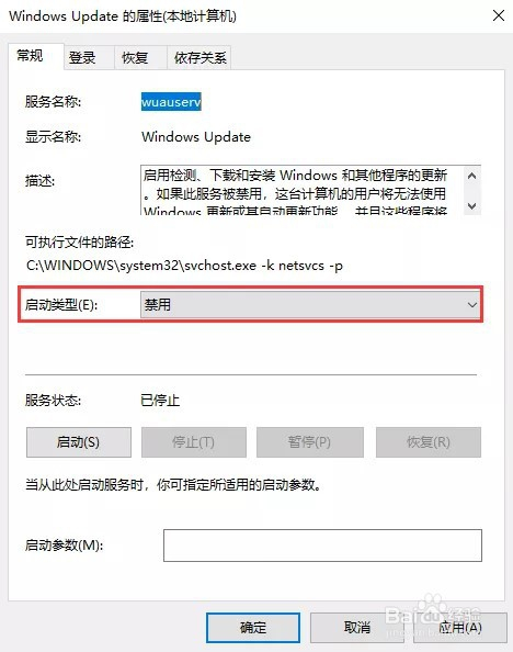 选择【已禁用】,点击【应用】、【确定】,这时就已经封闭主动更新功能。