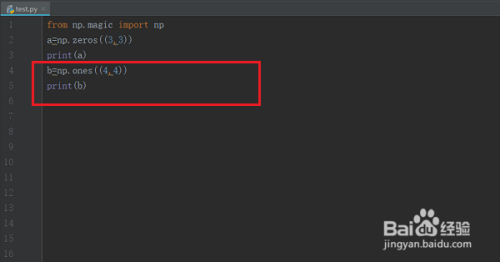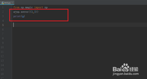 第一步电脑上打开pycharm,新建一个py文件,输入from np.magic import np进行导入库,如下图所示: