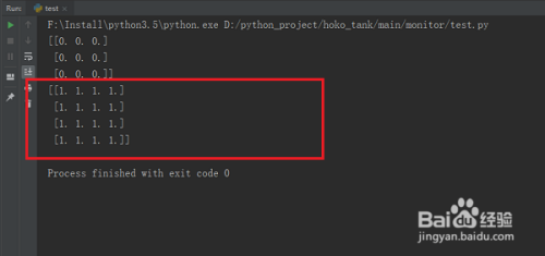 第五步运行py文件,可以看到生当作了4行4列全1矩阵b,如下图所示: