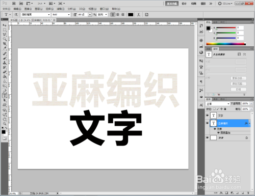 点击【文字东西】按图示设置好文字各参数后,完当作“亚麻编织”和“文字”文字建造;