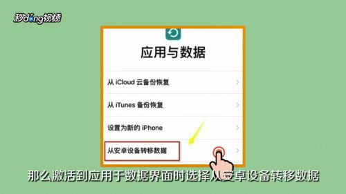 - 2在应用与数据界面选择“从安卓设备转移数据”。