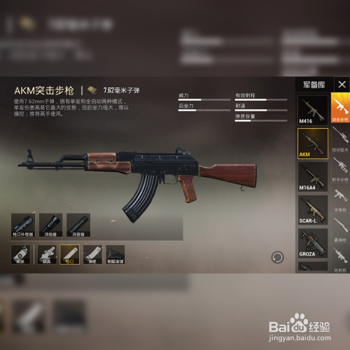 此AKM所能装配的瞄具有6个“红点、全息、2、3、4、6倍镜”,配镜较为齐备,除8倍镜不成装备其他都可按照环境选择