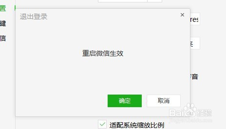 然后会弹出重启微信生效的提醒窗口,点击确定按钮就可以了。