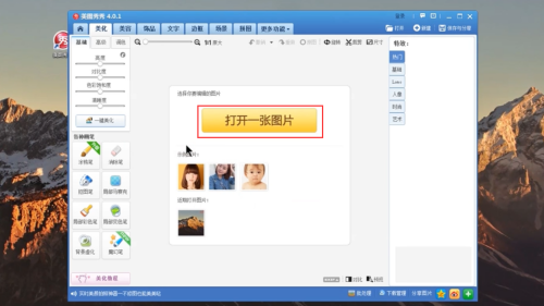 - 2选择“打开一张图片”,打开需要点窜的图片。