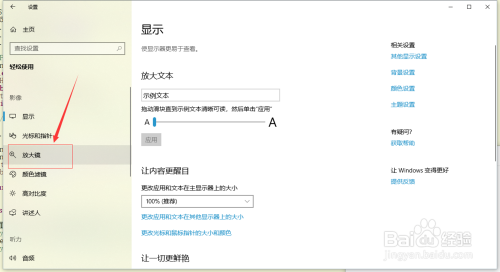 5、点击单选按钮至“开”即可,按win+(加号)即可打开放大镜