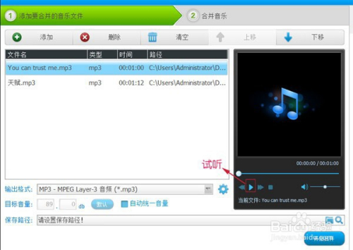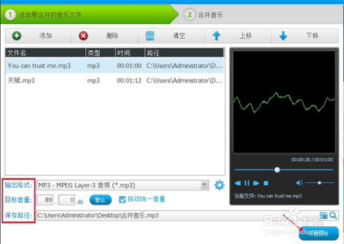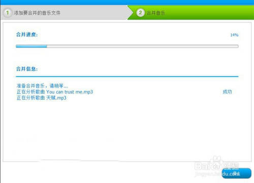 在过程中我们可以看到界面上的进度就申明我们的音乐文件归并当作功了哦!